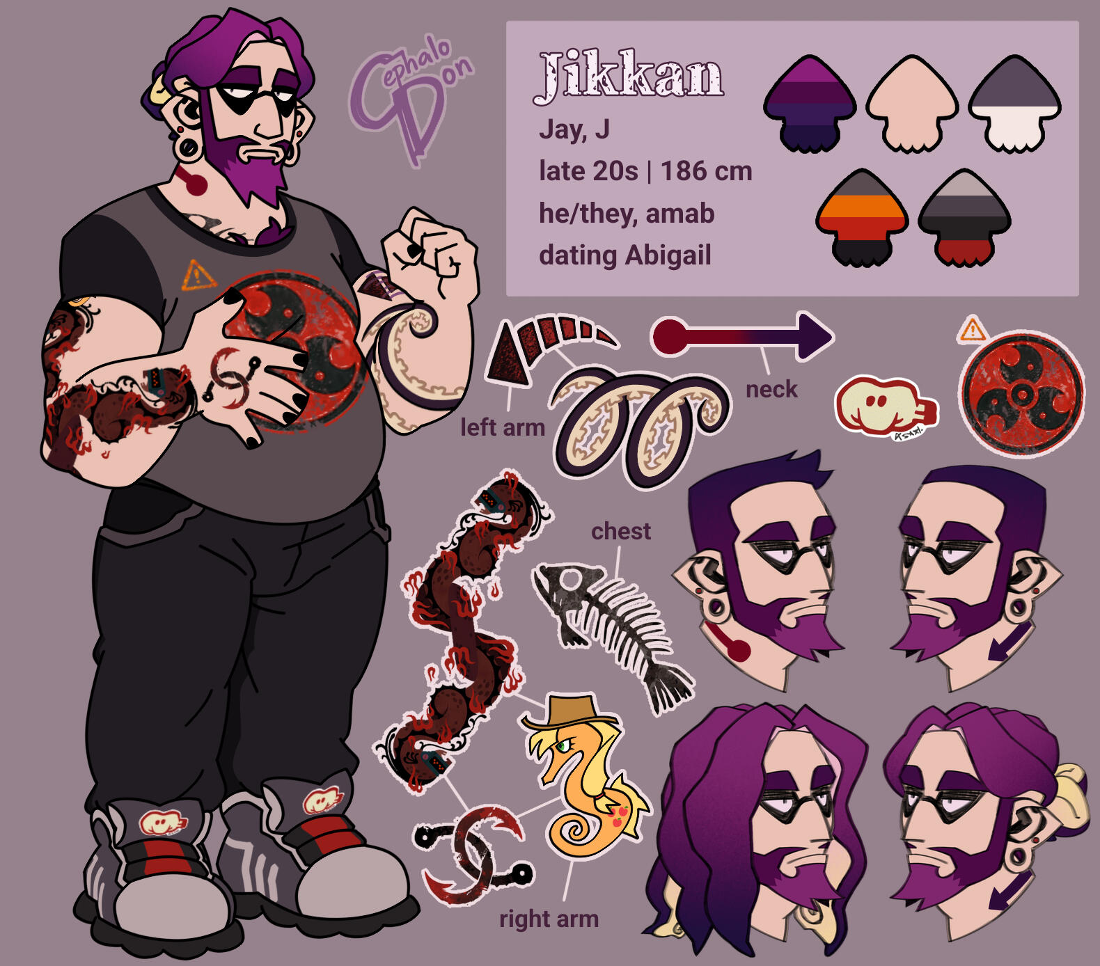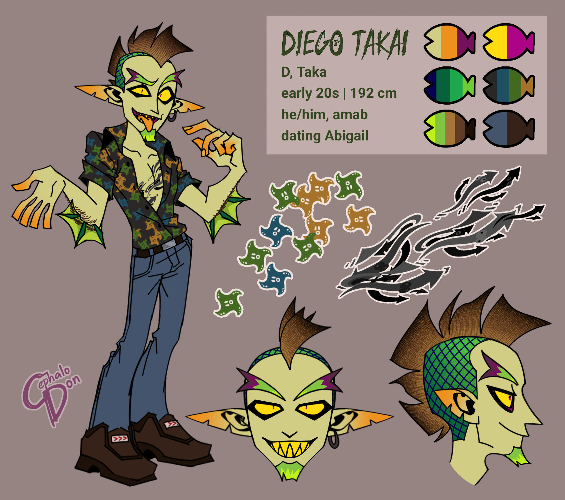 Taka x Warabi x Ikkan, aka takabikkan. I have changed them into my ocs, Diego Takai, Abigail and Jikkan. they are not splatbands related anymore